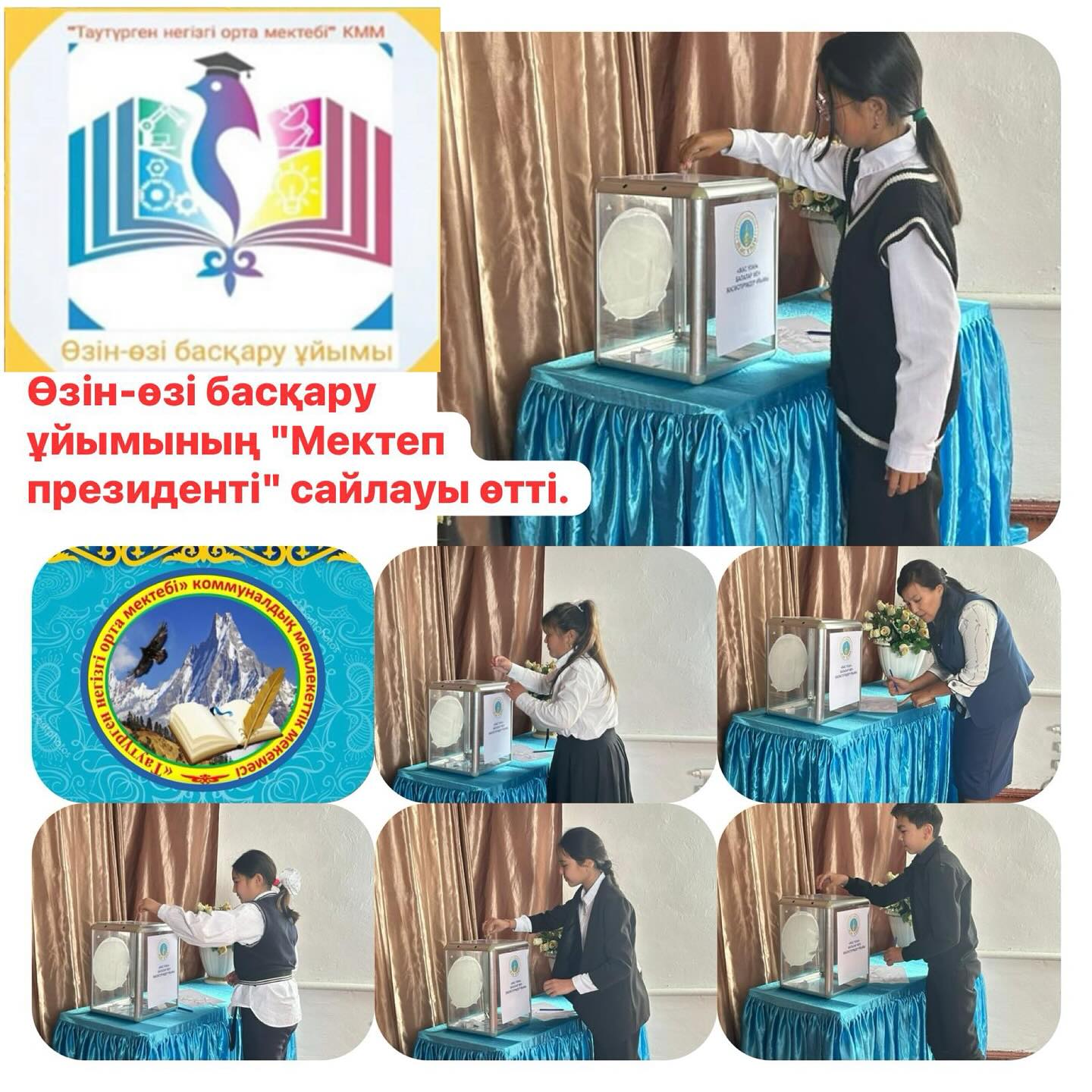 20 қазан 2023 жылы мектепшілік Өзін-өзі басқару ұйымының "Мектеп президенті" сайлауы өтті. 5-9 сынып оқушылары және мектеп ұстаздары Мектеп президентін сайлауға дауыс берді. Сайлау қорытындысы бойынша 22 баллмен 8 сынып оқушысы Ақжол Інжу басым дауыс иеленіп Мектеп президенті болып сайланды.