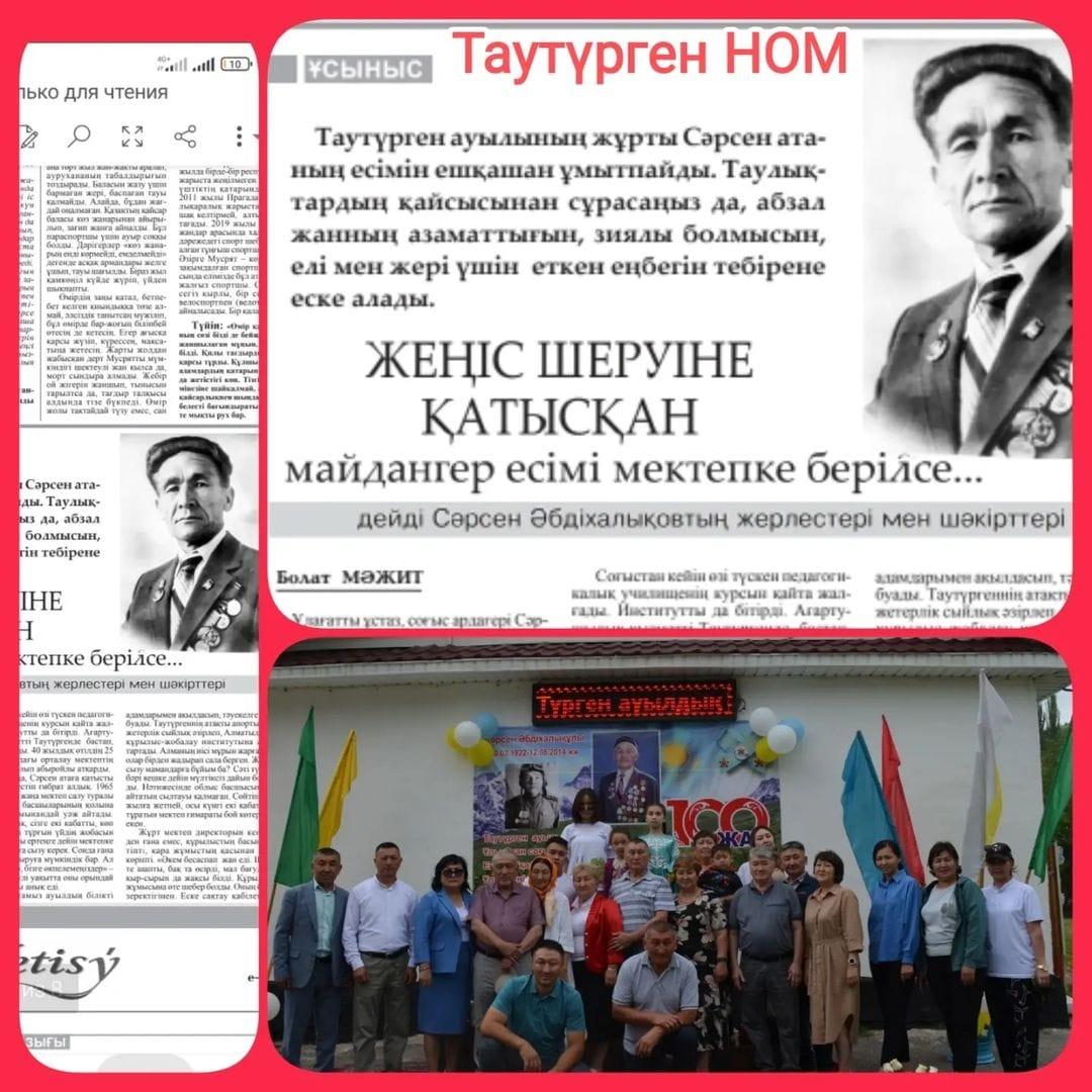 Еңбекшіқазақ ауданының Құрметті азаматы Сәрсен Әбдіхалықовтың 100 жасқа толуына арналған еске алу спорттық жарысы өткені туралы, Алматы облыстық қоғамдық-саяси, әлеуметтік-экономикалық "Жетісу" газетіне мақаламыз жарияланды. Мақсаты: Отанын қадірлеп, елжандыққа,ептілік пен төзімділікке, салауатты өмір салтын ұстануға тәрбиелеу. Оқушылар арасында достық қарым-қатынасты нығайту.