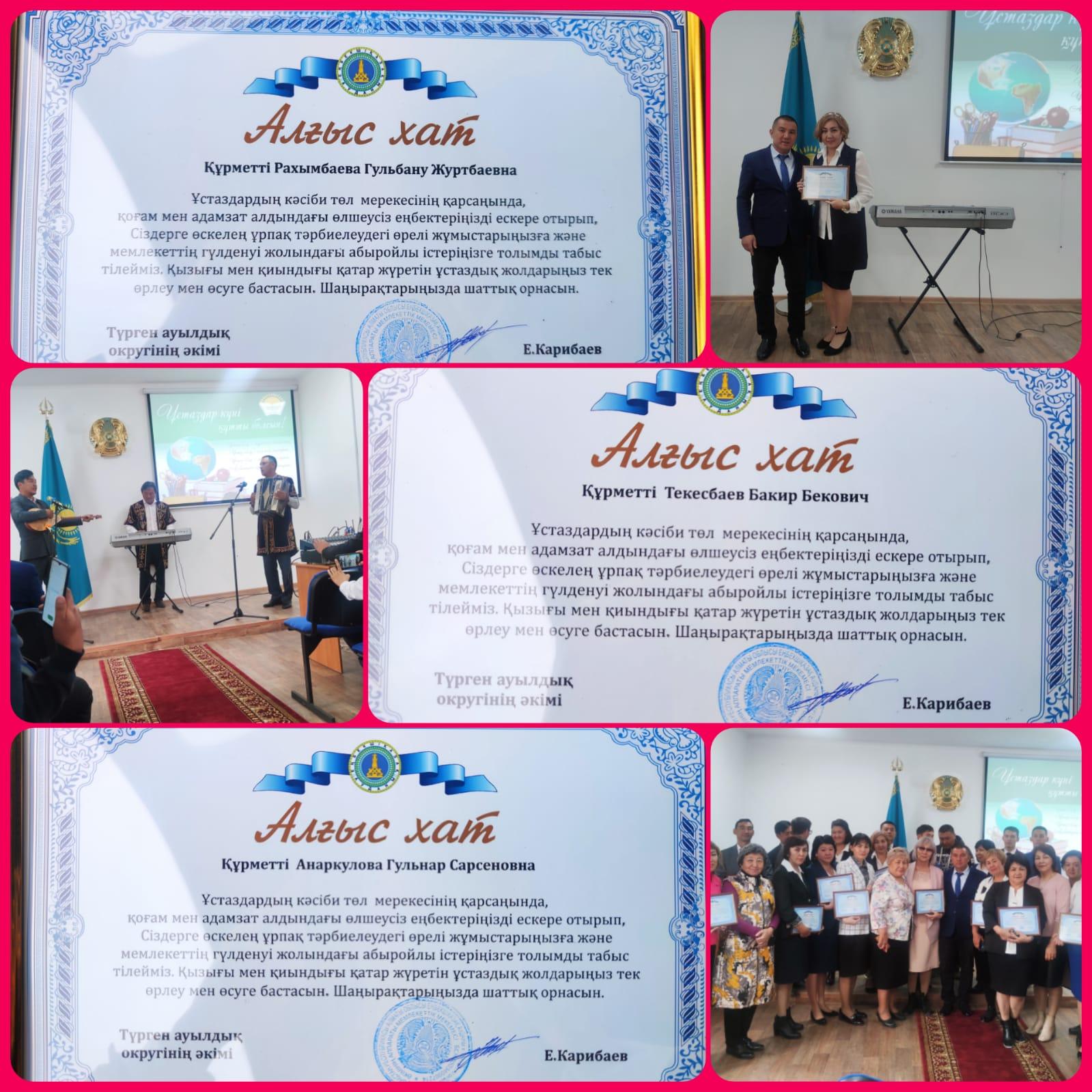 30 сентябрь 2022 0 1 2 3 4 5 "Алғыс хат" "Ұстаздар күні" Түрген ауылдық округінің әкімі Е.С.Карибаев мұғалімдерді "Алғыс хатпен марапаттады.