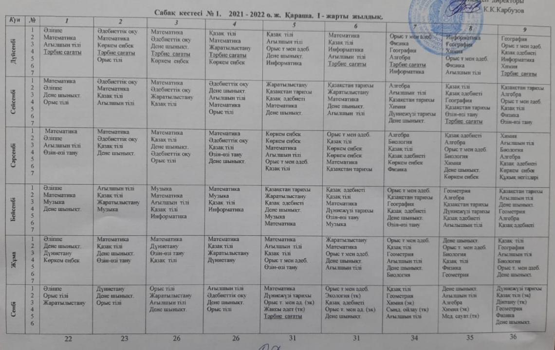 Сабақ кестесі » Таутүрген негізгі орта мектебі